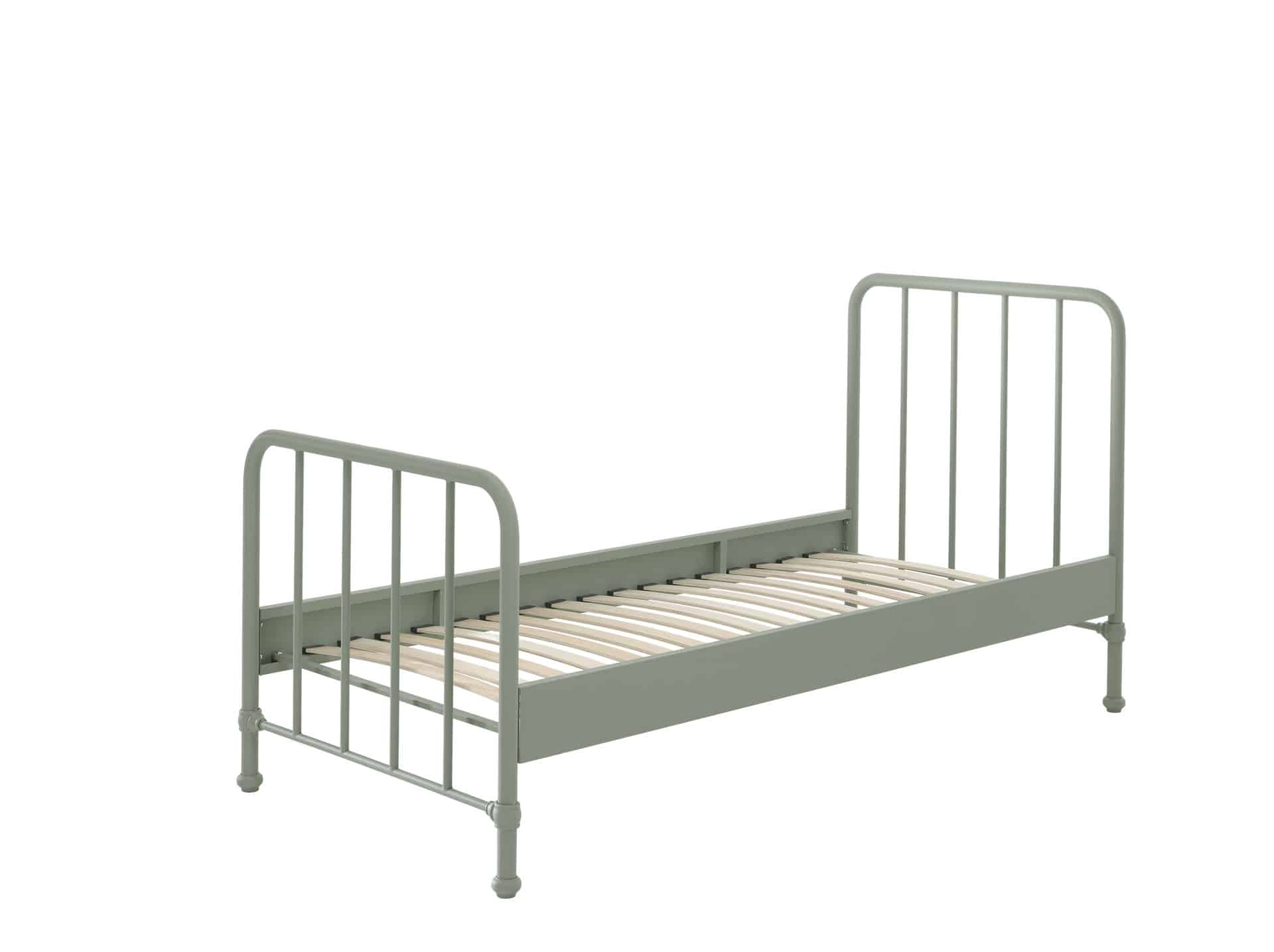 Dit BRONXX bed (90 x 200 cm) in de kleur olive green is vervaardigd uit metaal. Het bed heeft een industri�le uitstraling dankzij de matgelakte afwerking in groen. Het robuuste metalen frame en de gevezen bedzijden van 15 cm zorgen voor duurzaamheid en stabiliteit. De lattenbodem is inbegrepen. Een solide basis voor een goede nachtrust!