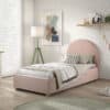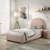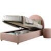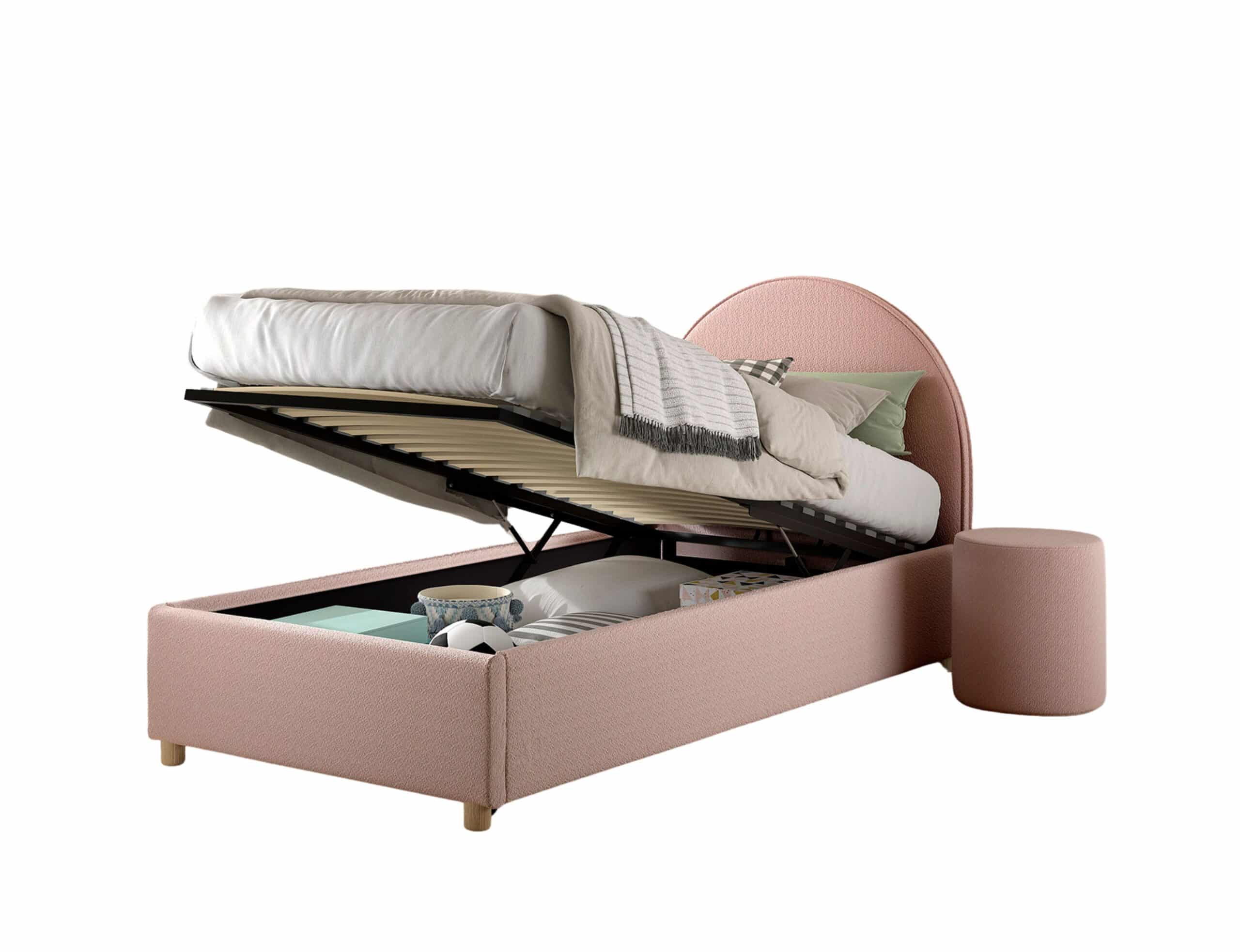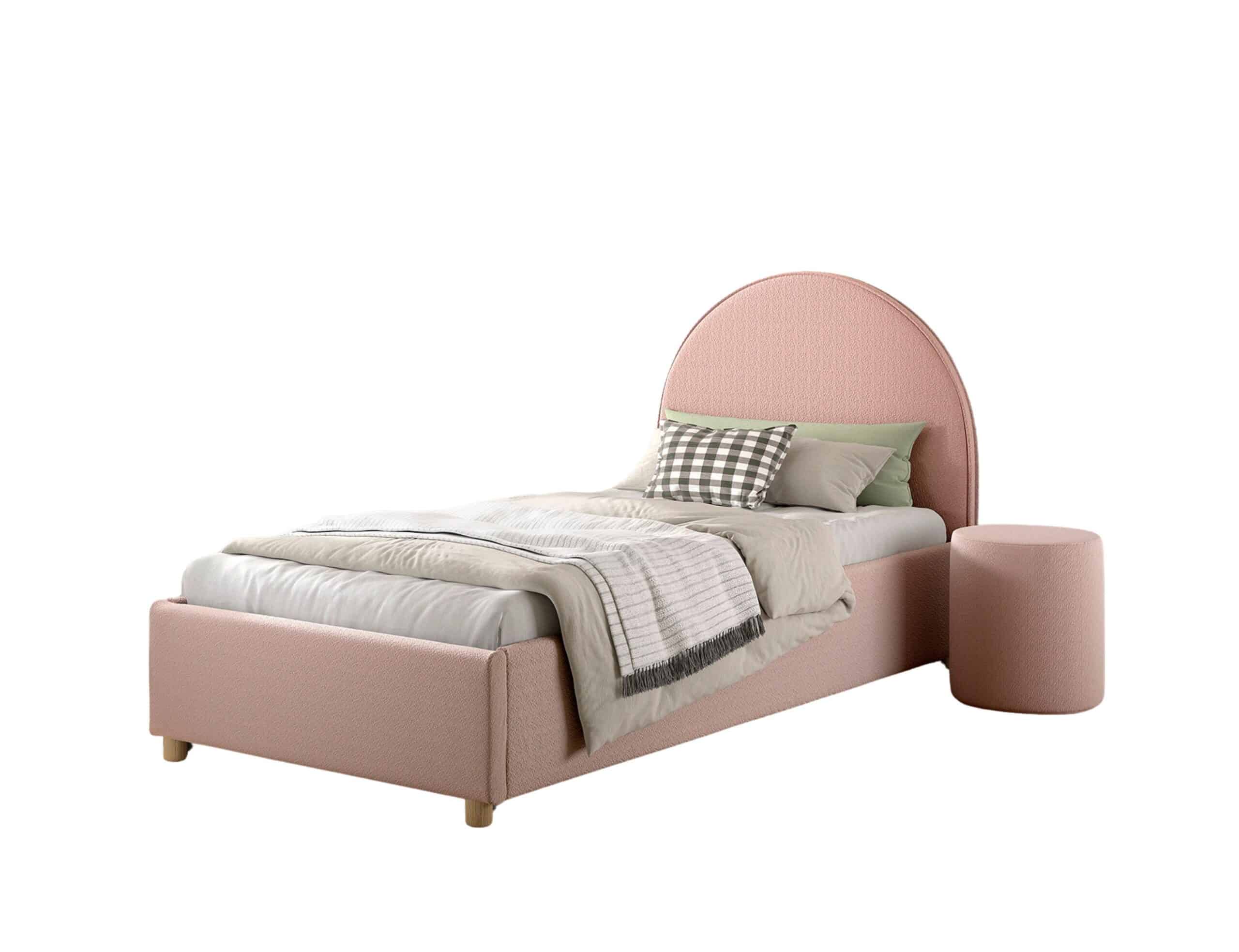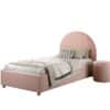 Dit gestoffeerde bed (140 x 200 cm) van de MOON collectie heeft een unieke boucl� bekleding in roze. De combinatie van deze stofbekleding en het afgeronde hoofdbord geven het bed een warme uitstraling en gezellig karakter. Een extra voordeel aan dit bed is dat er opbergruimte onder bed bevindt. De lattenbodem en matras kunnen gemakkelijk omhoog getrokken worden door middel van een lint. De poef in roze is een eye-catcher. De unieke boucl� stof cre�ert een warme uitstraling waardoor deze poef perfect in elke woonkamer, slaapkamer of leeshoek past. Dit item kan gebruikt worden als extra zitplaats, voetenbankje of als trendy nachttafel naast het bed waar je jouw boek of telefoon binnen handbereik kunt houden. Het is niet alleen een praktische meubelstuk, maar ook een decoratief item dat de ruimte verrijkt.