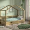 Het NATURE huisbed (90 x 200 cm) met hekje in de kleur natuur is vervaardigd in massieve eik. Het speelse design is een echte blikvanger elke kinderkamer. Dit bed beschikt over een hekje langs 3 kanten dat kan dienen als uitvalbeveiliging, maar dat ook ideaal is als zitbank. Maak het extra gezellig met kleurrijke kussens, dekentjes en een lichtslinger als decoratie. De bedlade biedt een extra slaapplek voor een gast maar kan net zo goed dienen als extra opbergruimte. Onderaan de bedlade zijn wieltjes voorzien zodat deze gemakkelijk kan worden in- en uitgetrokken.