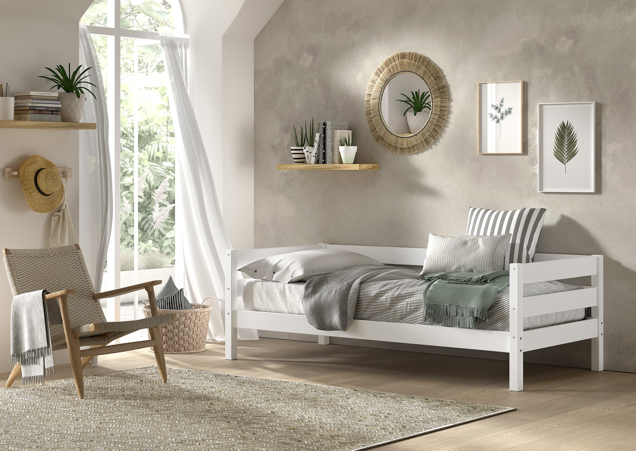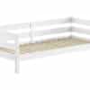 Het MARGRIT kajuitbed (90 x 200 cm) in wit is vervaardigd in massieve grenen. Het minimalistische en stijlvolle design maakt dat het in elk interieur past. Dit bed beschikt over een hekje langs 3 kanten met horizontale spijlen dat kan dienen als uitvalbeveiliging, maar dat ook ideaal is als zitbank in combinatie met kussens.