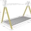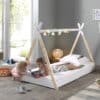 Dit bed (90 x 200 cm) van de TIPI collectie is vervaardigd uit massief grenen. Kinderen zijn dol op het speelse design. Het model bevindt zich op de grond waardoor het kind heel gemakkelijk zelfstandig in- en uit het bed kan stappen. Toch is er voldoende ruimte voor ventilatie van de matras. Versier dit bed met een leuke (licht)slinger of andere accessoires en cre�er samen het bed van zijn of haar dromen!