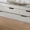 Deze bedlade (90 x 200 cm) in wit uit de FRITZ collectie is gemaakt uit massief grenen en kan gecombineerd worden met alle bedden uit dezelfde collectie. Er zijn wieltjes voorzien zodat de lade gemakkelijk kan worden in- en uitgetrokken. Het rolbed kan ingezet worden als extra slaapplaats voor logees of als opbergruimte.