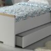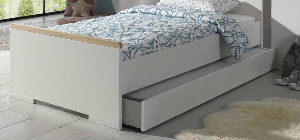 Deze bedlade (90×200) in wit uit de LONDON collectie kan gecombineerd worden met alle bedden uit dezelfde collectie. Er zijn wieltjes voorzien zodat de lade gemakkelijk kan worden in- en uitgetrokken. Het rolbed kan ingezet worden als extra slaapplaats voor logees of als opbergruimte.