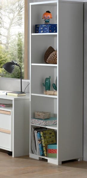Deze boekenkast uit de LONDON collectie in wit heeft een eenvoudig maar strak design waardoor het in elke kinder- of jeugdkamer past. De kast is onderverdeeld in 5 vakken door middel van 4 legplanken.