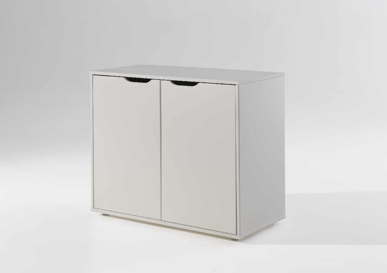 De commode met 2 deuren van de Pino collectie is volledig vervaardigd uit MDF en is wit gelakt. De binnenkant van de commode beschikt over een legplank. Deze commode kan zowel separaat gebruikt worden als in combinatie met de Pino half- of hoogslaper.