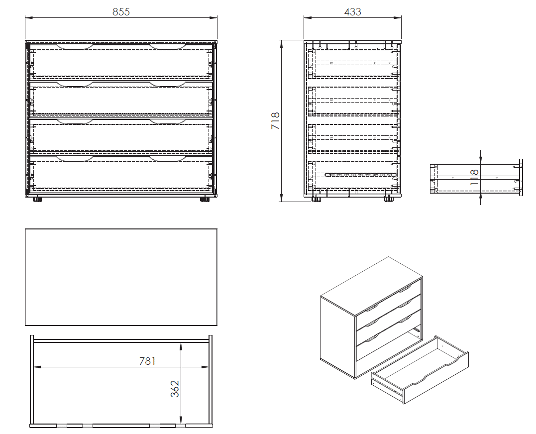 De commode met 4 lades van de PINO collectie is volledig vervaardigd uit MDF en is wit gelakt. Deze commode kan zowel separaat gebruikt worden als in combinatie met de PINO (half-)hoogslaper.