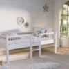 De FORREST BEECH halfhoogslaper (90 x 200 cm) in wit met ladder is vervaardigd uit hoogwaardige kwalitatieve Europese beuk. Het is niet alleen een comfortabele slaapplek, maar geeft ook eindeloos speelplezier. Er kunnen optioneel lades toegevoegd worden die kunnen ingezet worden als opbergruimte voor speelgoed, boeken, kussens,… Dit maakt het ideaal voor kamers waar ruimtebesparing essentieel is. De FORREST collectie is ontworpen met oog voor detail en straalt kwaliteit uit op elk niveau.