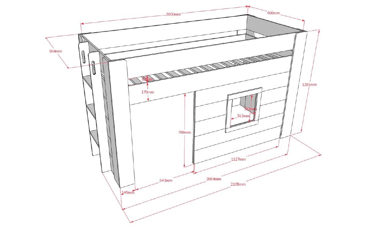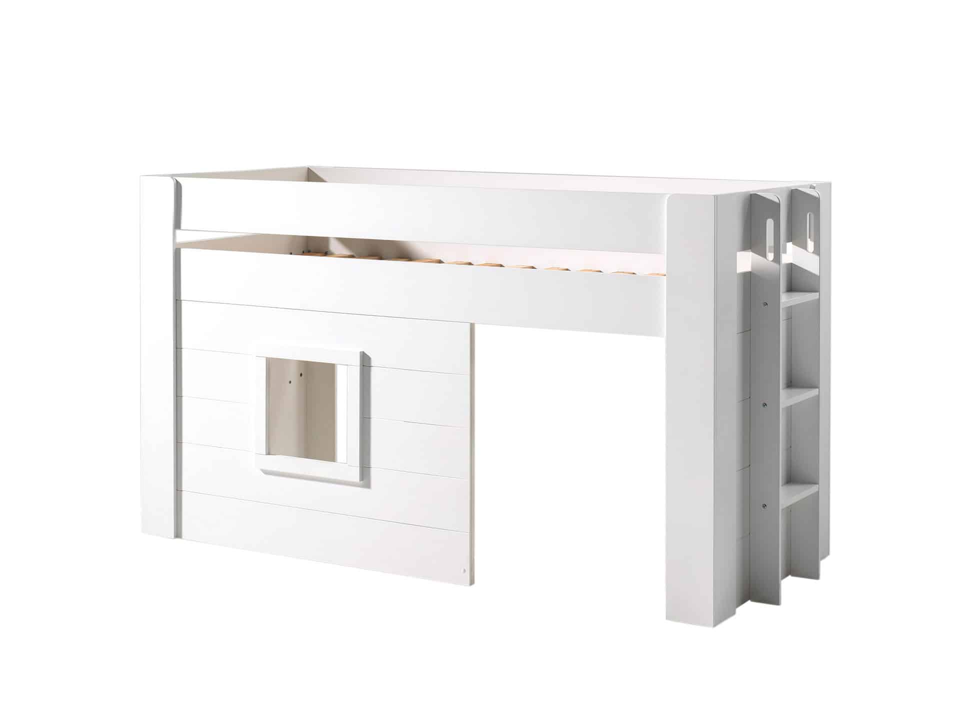 De NOAH halfhoogslaper (90 x 200 cm) in wit is vervaardigd uit hoogwaardig gelakte MDF. De ruimte onder het bed is multifunctioneel en kan ingericht worden als speel- of leeshoek of gebruikt worden als opbergruimte. Het open raam geeft het bed een speelse uitstraling. Zowel de ladder als het raam kunnen links of rechts gemonteerd worden.