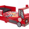 Deze TODDLER FIRE TRUCK is vervaardigd uit rood gelakte MDF. De lattenbodem is inclusief en is geschikt voor een matras van 70x140cm. De LED lampen zijn ook inclusief.