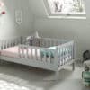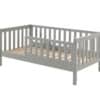Dit peuterbed (70 x 140 cm) in grijs uit de TOD collectie is vervaardigd uit massief grenen. Er zijn verhoogde zijkanten met verticale spijlen voorzien om de veiligheid van het kind te garanderen. Daarnaast geeft dit ook een geborgen gevoel, waardoor de overgang van een babybed vlot verloopt.