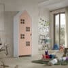 Deze kast uit de CASAMI collectie met roze deur in de vorm van een strandhuisje geeft meteen een speelse en kleurrijke toets aan elke kinderkamer. De kast beschikt over 3 legplanken en een kledinghanger die naar eigen keuze kunnen worden ingedeeld. Er is dus voldoende opbergruimte voorzien voor kledij, speelgoed, boeken, beddengoed,… Deze kast is perfect combineerbaar met de andere kastjes uit deze collectie en is bovendien een echte eye-catcher die elke baby- of kinderkamer compleet maakt.