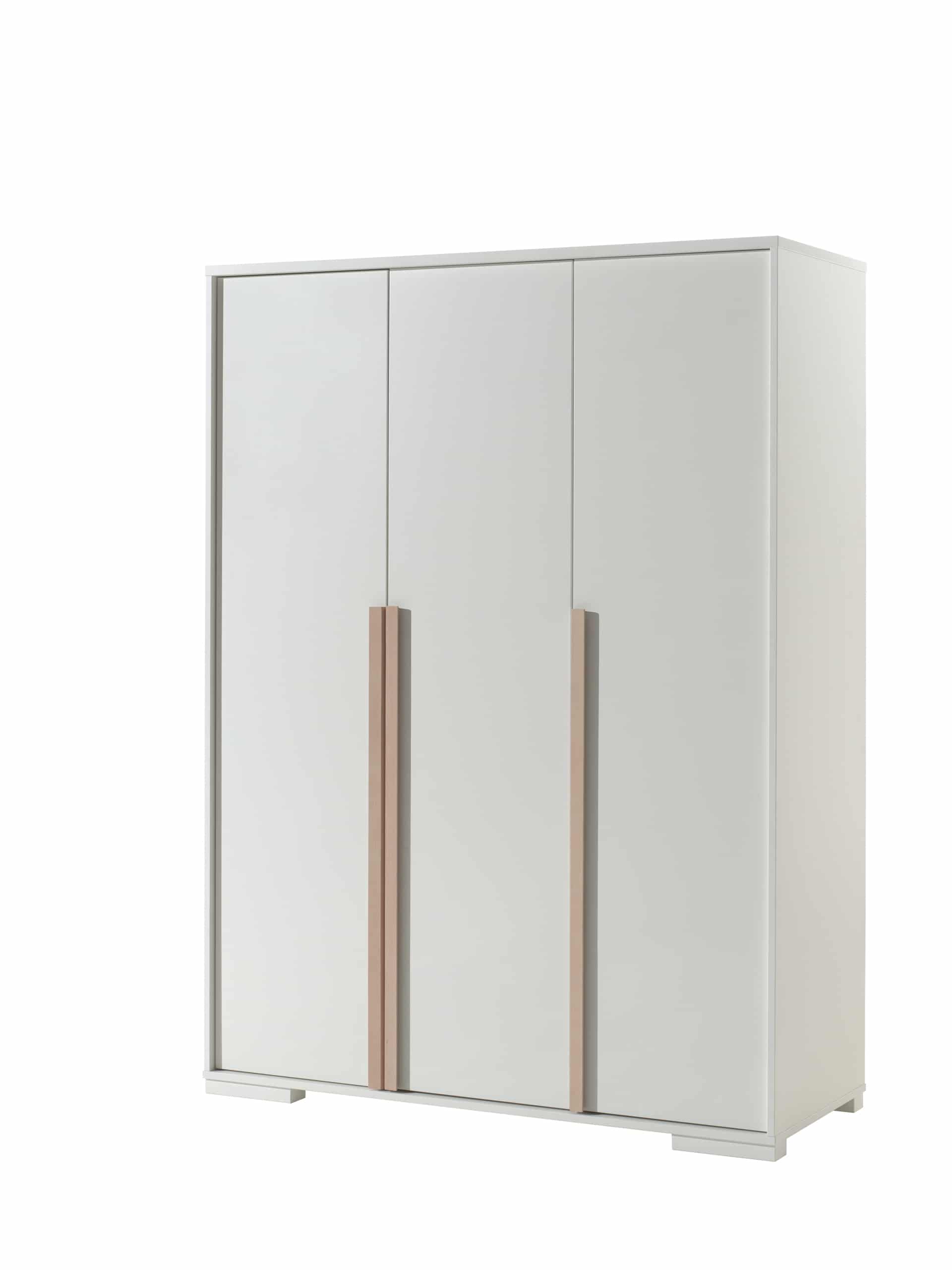 De LONDON 3-deurs kleerkast in wit heeft een Scandinavisch karakter door de combinatie met massief grenen. Deze kast beschikt over 2 legplanken en heeft ook een hangreel over de gehele breedte van 2 deuren. Achter de 3de deur bevinden zich 4 legplanken.