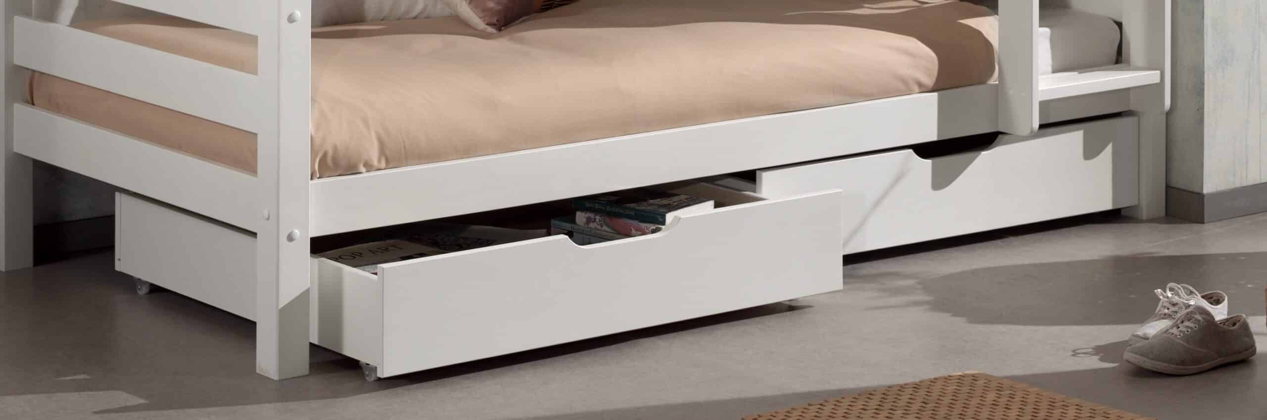 Deze PINO / SCOTT set van 2 lades in wit is vervaardigd uit massief Scandinavisch grenen hout. Ze vormen de perfecte aanvulling voor verschillende bedden van de PINO / SCOTT collectie en kunnen gebruikt worden voor het opbergen van speelgoed, knuffels, boeken… Er zijn wieltjes onderaan voorzien zodat deze makkelijk verplaatst kunnen worden.