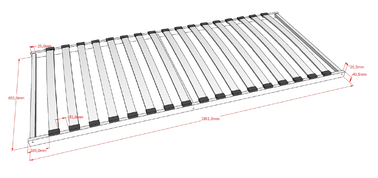 Deze lattenbodem met vast kader heeft 17 latten in plywood. Deze lattenbodem is compatibel met 90×200 cm bedden.
