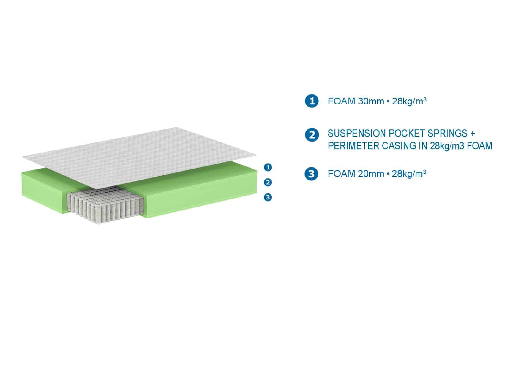 De ROYAL matras van 120 x 200 cm heeft een dikte van 23 cm. Deze matras beschikt over een wasbare hoes en stille pocketveren.