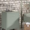 Deze nachttafel van de BRONXX nachttafel in de kleur olive green is vervaardigd uit metaal. Het heeft een industri�le uitstraling dankzij de matgelakte afwerking in groen. Aan de binnenzijde van het nachtkastje bevinden zich 2 legplanken voor het opbergen van persoonlijke spullen.
