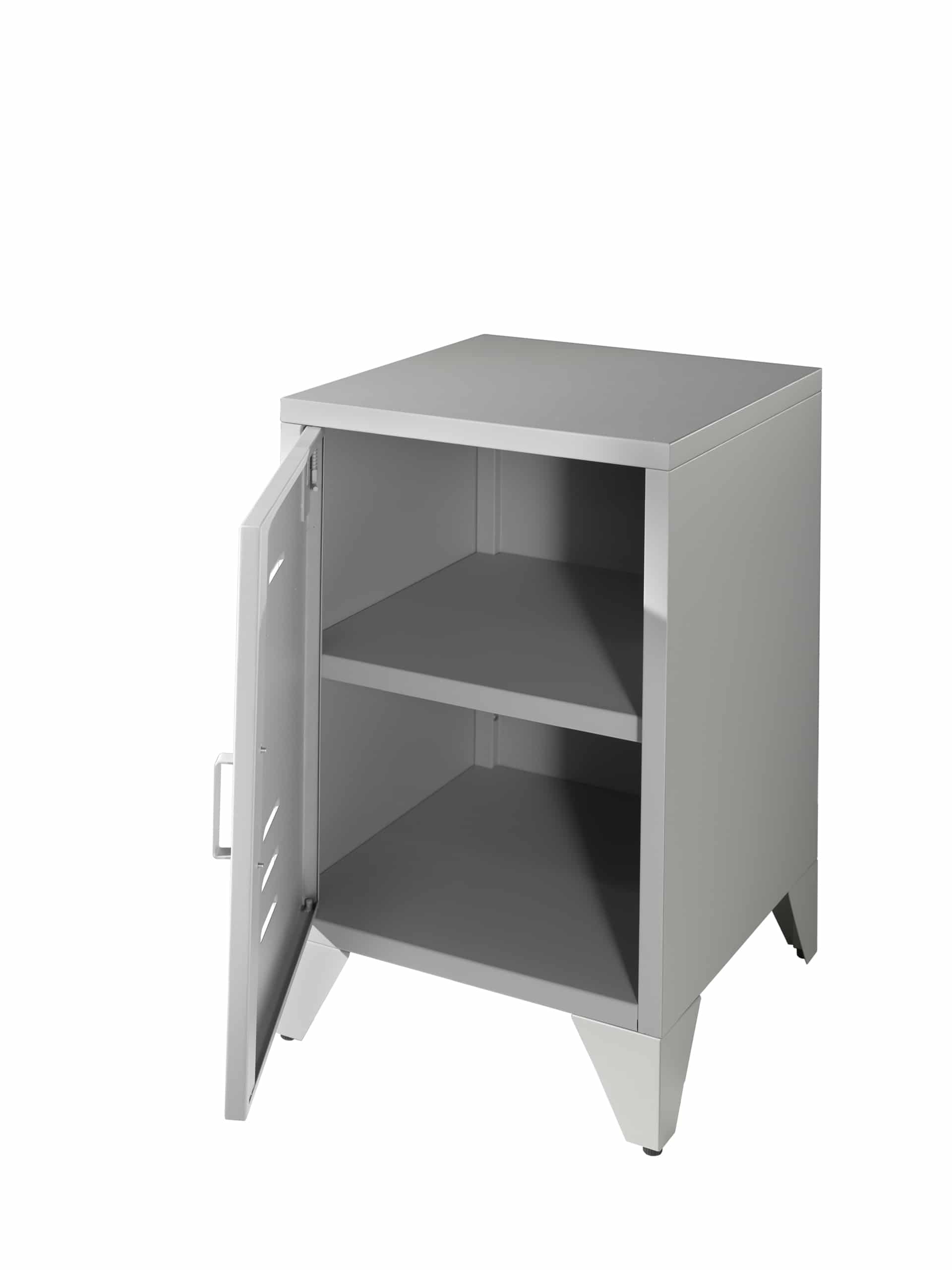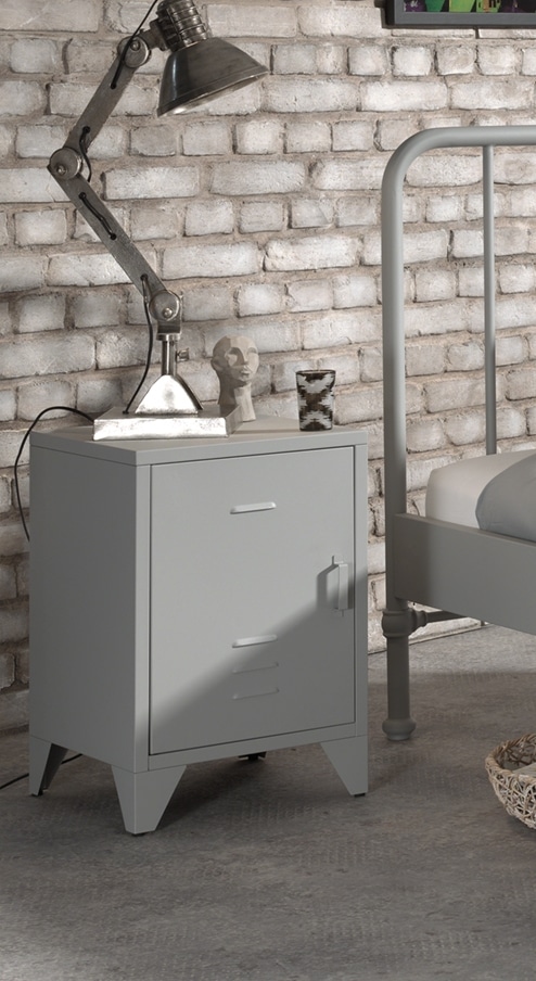 Deze nachttafel van de BRONXX nachttafel in de kleur rainy grey is vervaardigd uit metaal. Het heeft een industri�le uitstraling dankzij de matgelakte afwerking in grijs. Aan de binnenzijde van het nachtkastje bevinden zich 2 legplanken voor het opbergen van persoonlijke spullen. spullen.