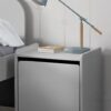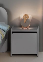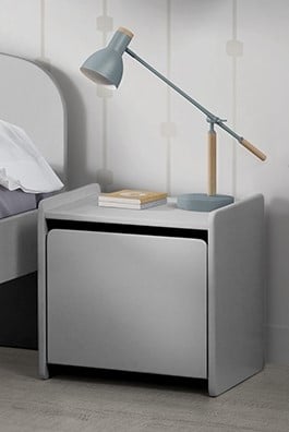 Deze KIDDY nachttafel in grijs past perfect bij het bijhorende bed uit deze collectie. Het is vervaardigd uit gelakte MDF in combinatie met massief grenen. Deze nachttafel heeft afgeronde randen en beschikt over 1 deur voor het opbergen van persoonlijke spullen.