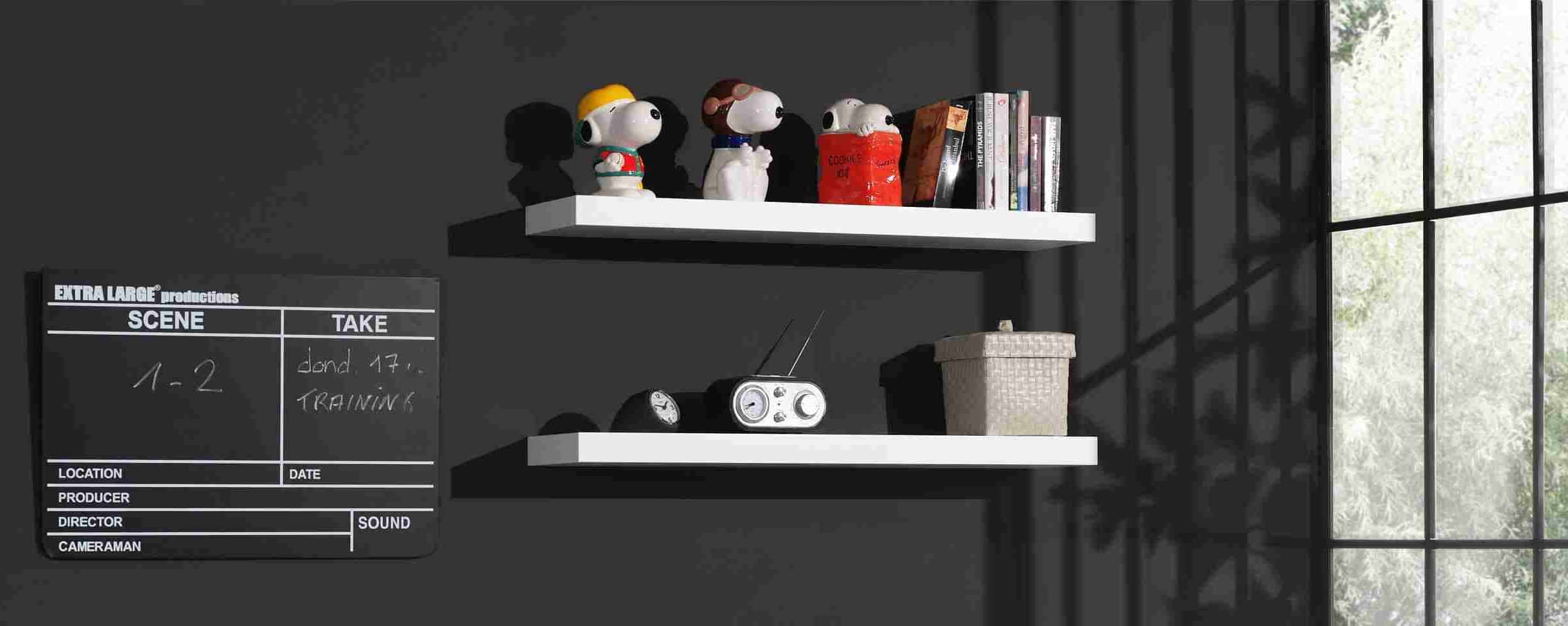 Deze 2 ROBIN hangplanken zijn gemaakt uit wit gelakte MDF in combinatie met massief grenen. Deze hangplanken zijn 100 cm breed, 24 cm diep en hebben een maximumbelasting van 5 kg