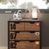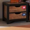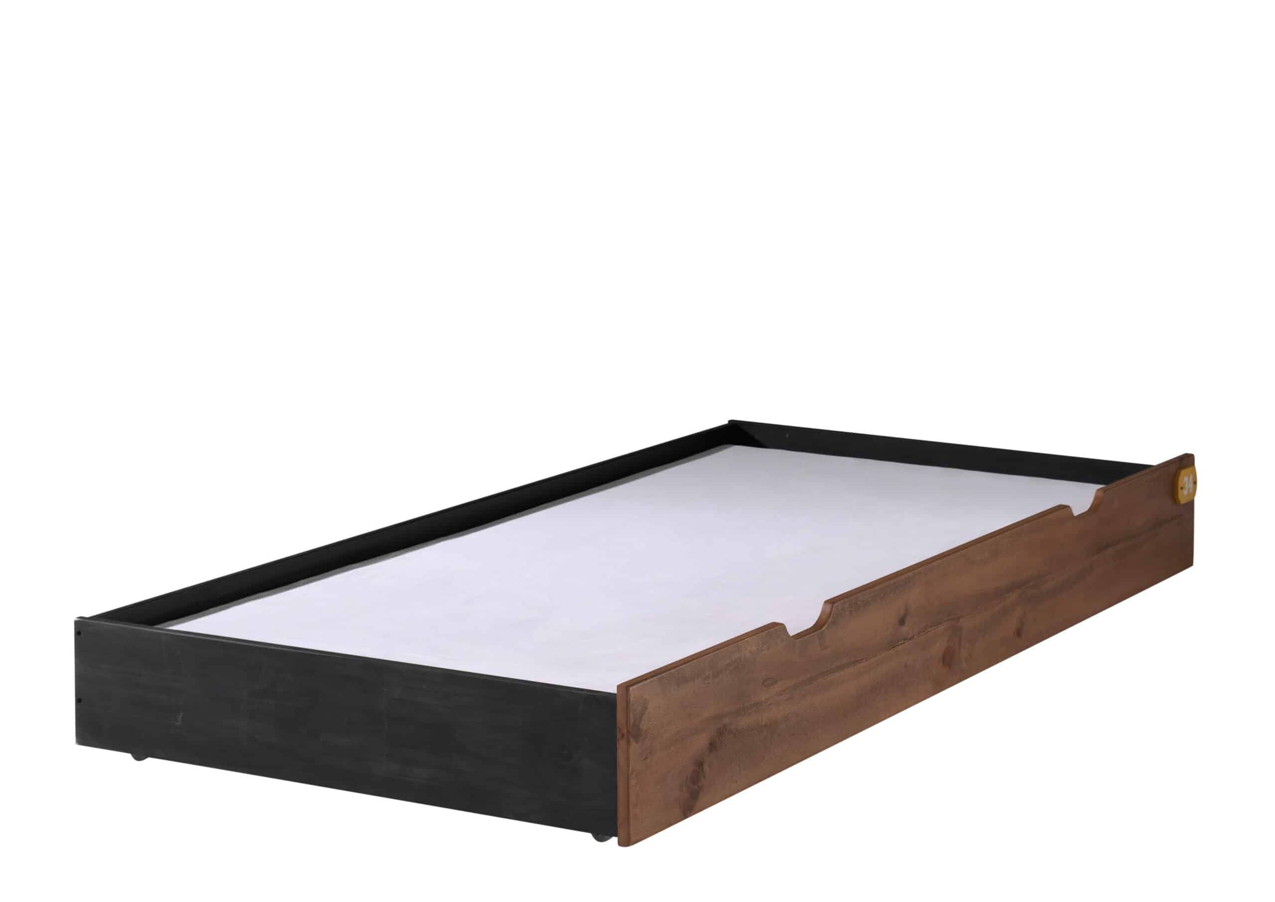 Het bed (90 x 200 cm) uit de ALEX collectie is vervaardigd uit massief grenen met een uitvoering in geborsteld dennenhout. De combinatie met het zwarte metaal maakt dat het een stoere, robuuste uitstraling heeft. De lattenbodem is niet inbegrepen, maar hiervoor raden wij een lattenbodem met vast kader aan. De bedlade kan gebruikt worden als opbergruimte, maar kan evengoed ingezet worden als extra slaapplaats voor logees. Het nachtkastje heeft 2 ruime lades. De 3-deurs kleerkast beschikt over een legplank met hangrail en achter de rechterdeur bevinden zich 4 legplanken. Onderaan zijn er ook 2 ruime lades zodat er voldoende plaats is voor het opbergen van kledij, beddengoed, persoonlijke spullen,… Het bureau heeft een ruim werkoppervlak en 3 lades en de boekenkast beschikt over 4 legplanken en een kast met 2 deuren. Ideaal voor boeken en schoolmateriaal. Tot slot is er nog de commode met 2 kleine en 2 grote lades.