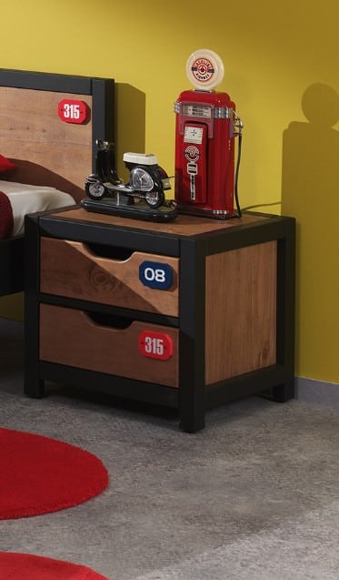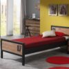Het bed (90 x 200 cm) uit de ALEX collectie is vervaardigd uit massief grenen met een uitvoering in geborsteld dennenhout. De combinatie met het zwarte metaal maakt dat het een stoere, robuuste uitstraling heeft. Er is een lattenbodem met vast kader voorzien. De bedlade kan gebruikt worden als opbergruimte, maar kan evengoed ingezet worden als extra slaapplaats voor logees. Het nachtkastje beschikt over 2 ruime lades, zodat er voldoende plaats is voor het opbergen van persoonlijke spullen.