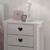 Het eenpersoonbed (90 x 200 cm) in wit uit de AMORI collectie combineert een tijdloos, fris design met zachte, romantische accenten. Het is de favoriete kamer van iedereen die houdt van elegante meubels. Er is een lattenbodem voorzien met vast kader en 17 latten. De nachttafel beschikt over 3 ruime lades voor het opbergen van persoonlijke spullen. De kleerkast kast bestaat uit 2 legplanken en een kledingrail. De bedlade biedt een extra slaapplek voor een gast maar kan net zo goed dienen als opbergruimte. Laat je verleiden door de charme van deze kamer met hartjesdetail.