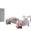 Het eenpersoonbed (90 x 200 cm) in wit uit de AMORI collectie combineert een tijdloos, fris design met zachte, romantische accenten. Het is de favoriete kamer van iedereen die houdt van elegante meubels. Er is een lattenbodem voorzien met vast kader en 17 latten. De nachttafel beschikt over 3 lades en het bureau heeft een ruim werkoppervlak en 2 lades voor het opbergen van boeken, schoolmateriaal, persoonlijke spullen,… De kleerkast kast bestaat uit 2 legplanken en een kledingrail. Laat je verleiden door de charme van deze kamer met hartjesdetail.