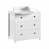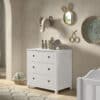 De commode in wit uit de AMORI collectie combineert een tijdloos, fris design met zachte, romantische accenten. Het is de favoriete kamer van iedereen die houdt van elegante meubels. Deze commode is niet alleen een mooie aanvulling in de babykamer, maar ook zeer praktisch in te richten door de 3 ruime lades die beschikbaar zijn. Vergemakkelijk en verfraai de dagelijkse verzorging van je baby met het bijhorende opzetstuk. Deze handige verzorgingsplank past perfect op de commode en biedt een veilige plek om je baby te verschonen en verzorgen door de opstaande randen en stevige constructie. Laat je verleiden door de charme van deze kamer met hartjesdetail.