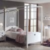 Het hemelbed (90 x 200 cm) in wit uit de AMORI collectie combineert een tijdloos, fris design met zachte, romantische accenten. Het is de favoriete kamer van iedereen die houdt van elegante meubels. De lattenbodem is niet inbegrepen, maar hiervoor raden wij een lattenbodem aan met vast kader. De nachttafel beschikt over 3 ruime lades voor het opbergen van persoonlijke spullen. Laat je verleiden door de charme van deze kamer met hartjesdetail.