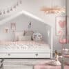 Het huisbed (90 x 200 cm) in wit zonder achterwand uit de AMORI collectie combineert een tijdloos, fris design met zachte, romantische accenten. Het is de favoriete kamer van iedereen die houdt van elegante meubels. De lattenbodem is inbegrepen. De bedlade biedt een extra slaapplek voor een gast maar kan net zo goed dienen als opbergruimte. Laat je verleiden door de charme van deze kamer met hartjesdetail.