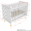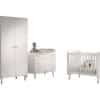 Het BILLY babybed (60 x 120 cm) in wit (satin white) is een pronkstuk voor de babykamer. Het grafische patroon in combinatie met de gouden pootjes en handgrepen zorgen voor een retro modern karakter. Daarnaast zorgen de stevige constructie uit hoogwaardige MDF en verstelbare bodem voor veiligheid en comfort. Dit stijlvolle ontwerp geeft net dat tikkeltje meer aan de babykamer. De commode is voorzien van drie ruime lades zodat er voldoende ruimte is voor het opbergen van essenti�le items. De frontpanelen zijn afgewerkt met een grafisch motief en de handvaten zijn in een gouden kleur. Vergemakkelijk en verfraai de dagelijkse verzorging van je baby met het extra opzetstuk. Deze handige verzorgingsplank past perfect op deze commode en biedt een veilige plek om je baby te verschonen en verzorgen door de opstaande randen en stevige constructie. De 2-deurs kleerkast bestaat uit 2 legplanken en 1 hangrail, zo is er voldoende ruimte voor het opbergen van kledij, bedlinnen,� Dit stijlvolle ontwerp geeft net dat tikkeltje meer aan de baby- of kinderkamer.