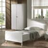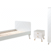 Het eenpersoonsbed (90 x 200 cm) in wit (satin white) uit de BILLY collectie heeft een unieke uitstraling. Het grafische patroon in combinatie met de gouden pootjes en handgrepen zorgen voor een retro modern karakter. Het bed is vervaardigd uit massief grenen in combinatie met MDF. De lattenbodem is inclusief. Het nachtkastje beschikt over 2 lades voor het opbergen van essenti�le spullen. De 2-deurs kleerkast bestaat uit 2 legplanken en 1 hangrail, zo is er voldoende ruimte voor het opbergen van kledij, bedlinnen,� Dit stijlvolle ontwerp geeft net dat tikkeltje meer aan de kinderkamer.