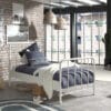 Dit BRONXX bed (90 x 200 cm) in de kleur wit is vervaardigd uit metaal. Het bed heeft een industri�le uitstraling dankzij de matgelakte afwerking. Het robuuste metalen frame en de gevezen bedzijden van 15 cm zorgen voor duurzaamheid en stabiliteit. De lattenbodem is inbegrepen. Een solide basis voor een goede nachtrust! Aan de binnenzijde van het nachtkastje bevinden zich 2 legplanken voor het opbergen van persoonlijke spullen.