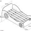 Dit LOVE CAR bed is vervaardigd uit roze gelakte MDF. Het lichtroze bed is versierd met hartjes. De zijkanten zijn verhoogd om ervoor te zorgen dat het kind niet eruit kan rollen. De lattenbodem en een BASIC COOL MATRAS zijn inbegrepen.
