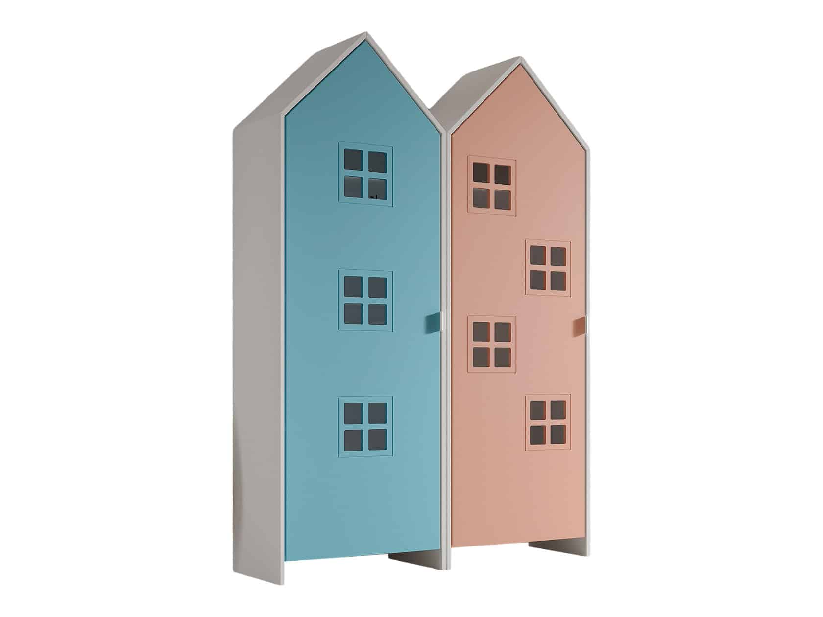 Deze combinatie uit de CASAMI BRUGES collectie bestaat uit 2 kasten in de vorm van een strandhuisje. Deze geven meteen een speelse en kleurrijke toets aan elke kinderkamer. De kastjes met blauwe en roze deur beschikken over 3 legplanken en een kledinghanger die naar eigen keuze kunnen worden ingedeeld. Er is dus voldoende opbergruimte voorzien voor kledij, speelgoed, boeken, beddengoed,… Deze kastjes zijn een echte eye-catcher die elke baby- of kinderkamer compleet maakt.