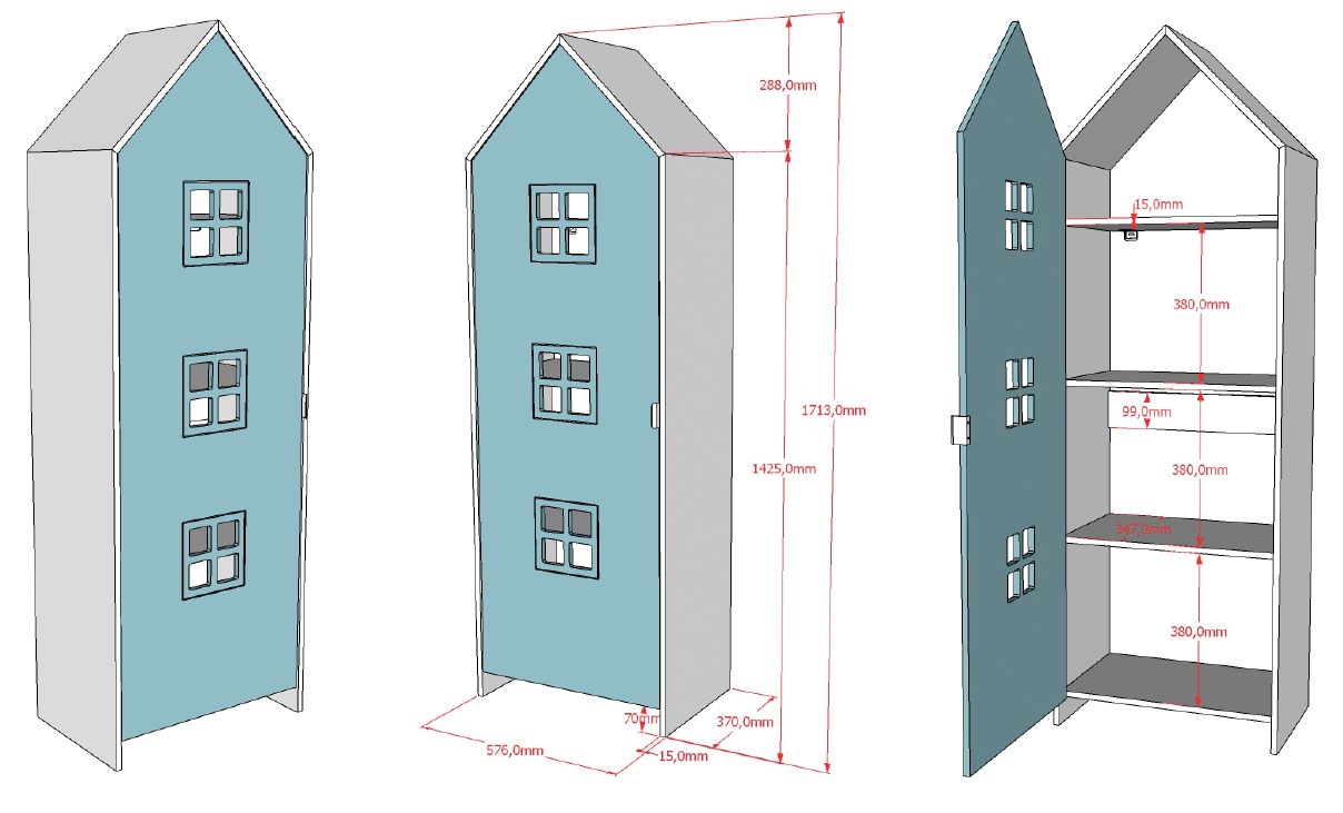 Deze combinatie uit de CASAMI BRUGES collectie bestaat uit 2 kasten in de vorm van een strandhuisje. Deze geven meteen een speelse en kleurrijke toets aan elke kinderkamer. De kast met blauwe deur beschikt over 3 legplanken en een kledinghanger die naar eigen keuze kunnen worden ingedeeld. Bij de open kast is er geen kledinghanger voorzien. Er is dus voldoende opbergruimte voorzien voor kledij, speelgoed, boeken, beddengoed,… Deze kastjes zijn een echte eye-catcher die elke baby- of kinderkamer compleet maakt.