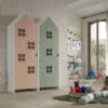 Deze combinatie uit de CASAMI BRUGES collectie bestaat uit 2 kasten in de vorm van een strandhuisje. Deze geven meteen een speelse en kleurrijke toets aan elke kinderkamer. De kastjes met roze en groene deur beschikken over 3 legplanken en een kledinghanger die naar eigen keuze kunnen worden ingedeeld. Er is dus voldoende opbergruimte voorzien voor kledij, speelgoed, boeken, beddengoed,… Deze kastjes zijn een echte eye-catcher die elke baby- of kinderkamer compleet maakt.
