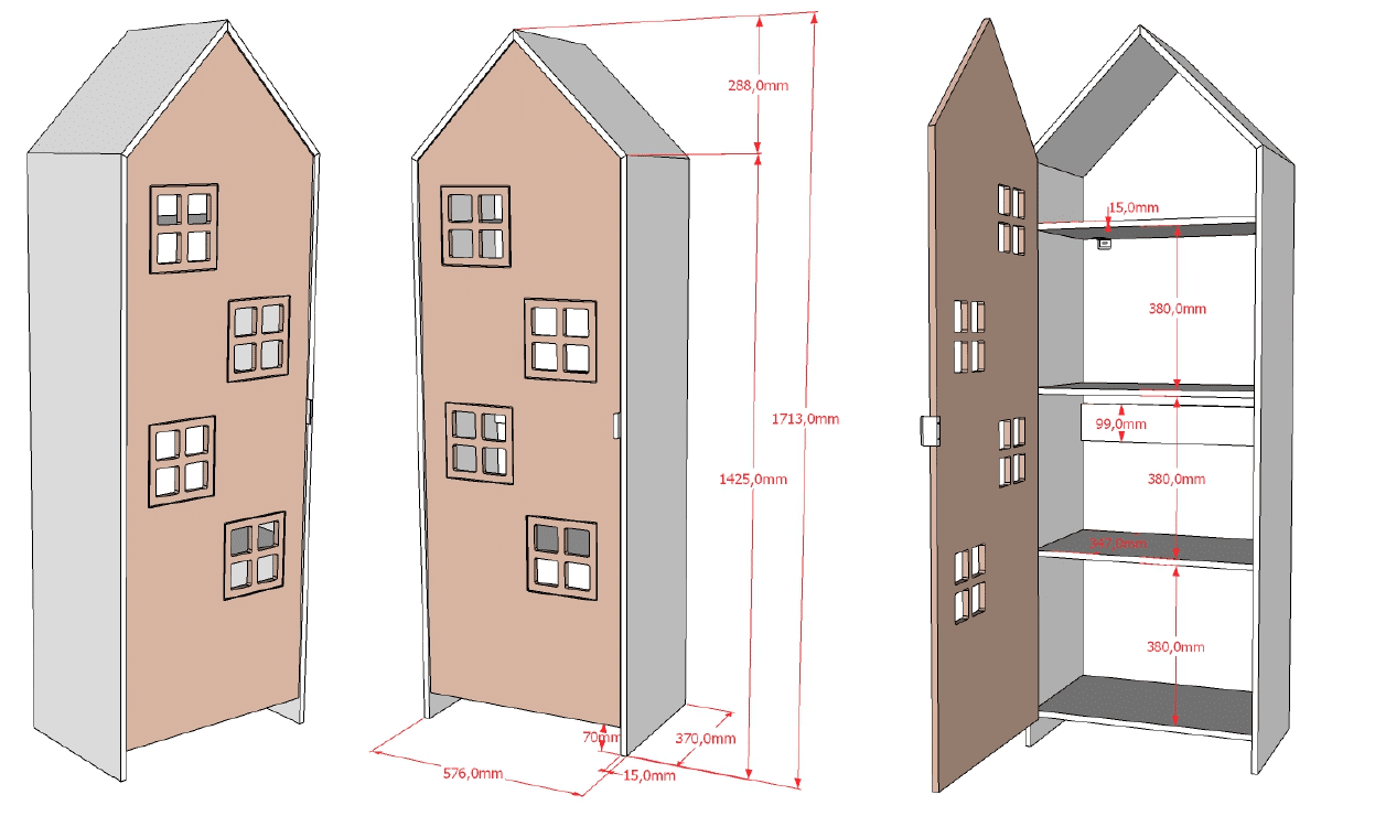 Deze combinatie uit de CASAMI BRUGES collectie bestaat uit 3 kasten in de vorm van een strandhuisje. Deze geven meteen een speelse en kleurrijke toets aan elke kinderkamer. De kastjes met blauwe, roze en gele deur beschikken over 3 legplanken en een kledinghanger die naar eigen keuze kunnen worden ingedeeld. Er is dus voldoende opbergruimte voorzien voor kledij, speelgoed, boeken, beddengoed,… Deze kastjes zijn een echte eye-catcher die elke baby- of kinderkamer compleet maakt.