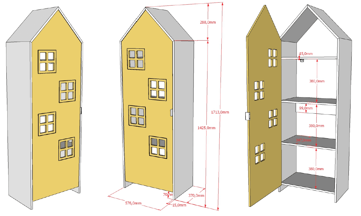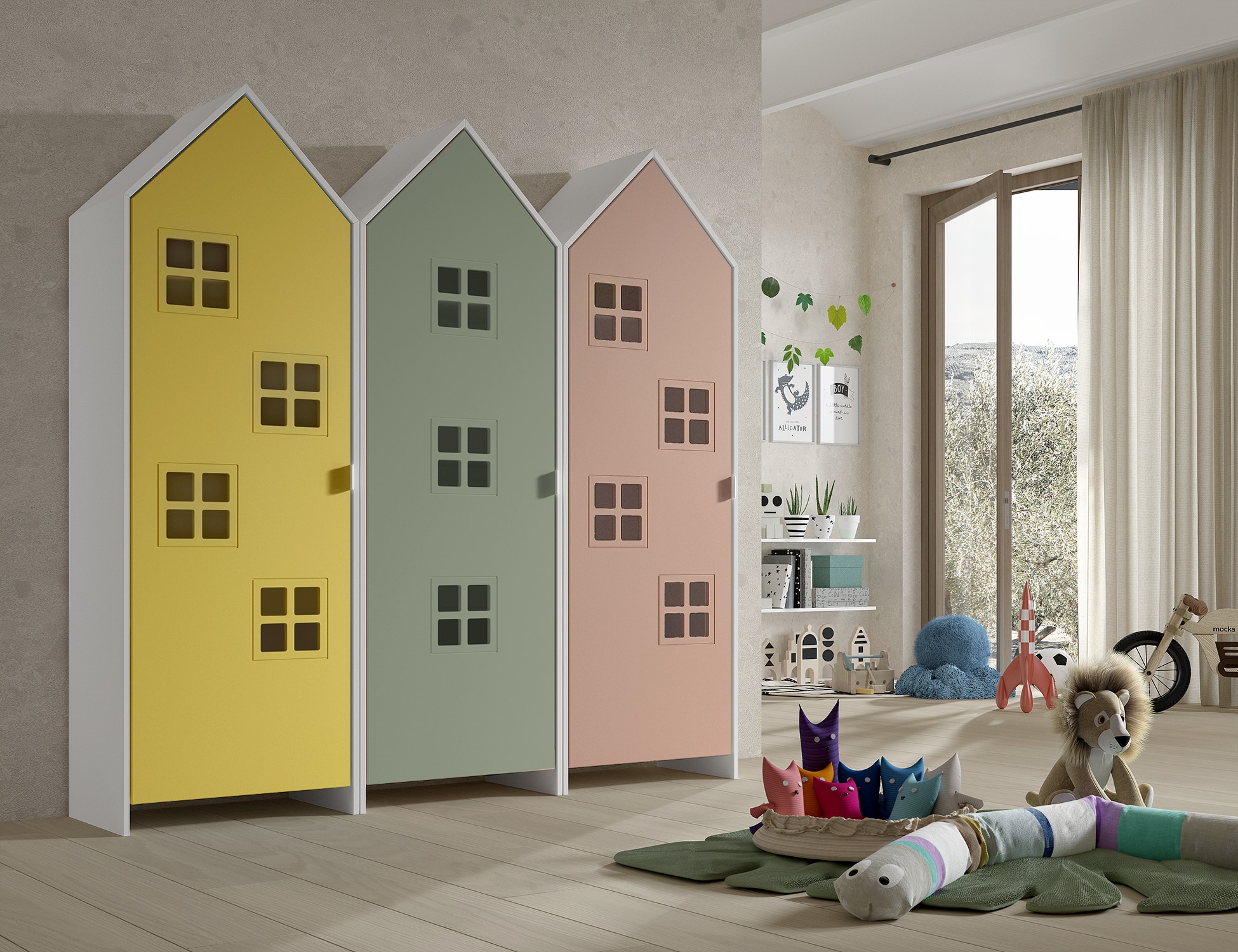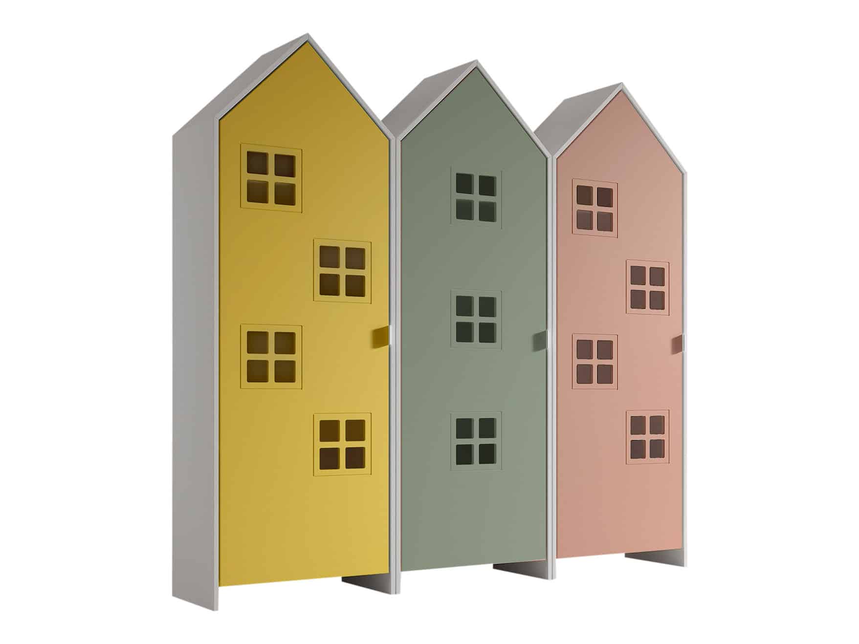 Deze combinatie uit de CASAMI BRUGES collectie bestaat uit 3 kasten in de vorm van een strandhuisje. Deze geven meteen een speelse en kleurrijke toets aan elke kinderkamer. De kastjes met gele, roze en groene deur beschikken over 3 legplanken en een kledinghanger die naar eigen keuze kunnen worden ingedeeld. Er is dus voldoende opbergruimte voorzien voor kledij, speelgoed, boeken, beddengoed,… Deze kastjes zijn een echte eye-catcher die elke baby- of kinderkamer compleet maakt.