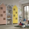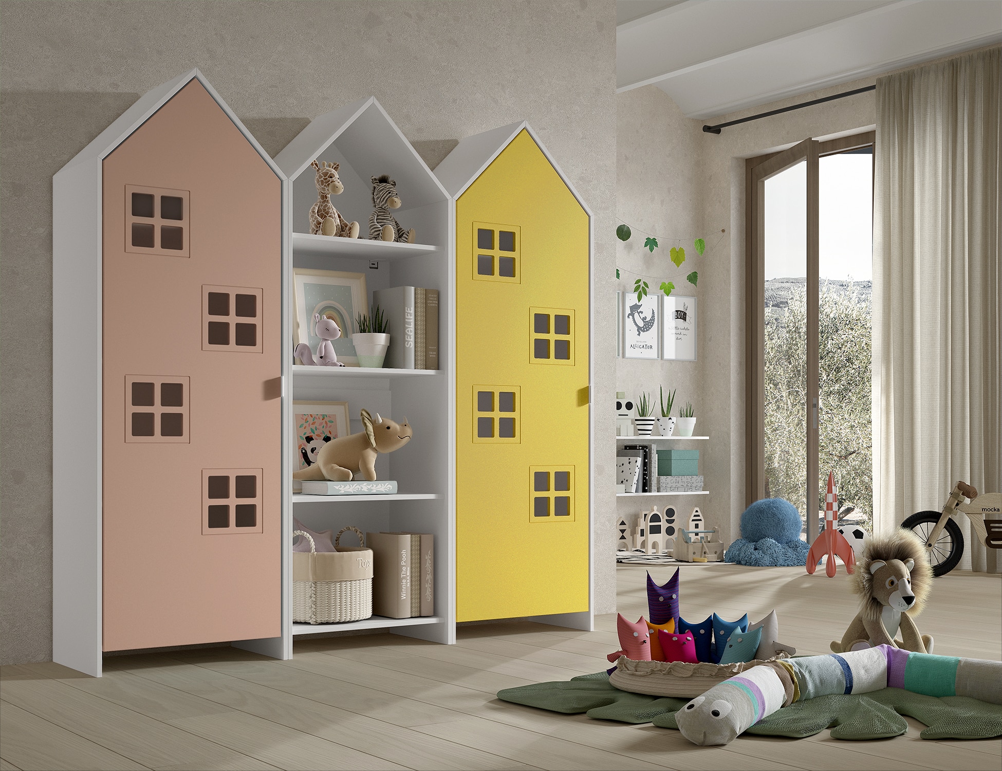 Deze combinatie uit de CASAMI BRUGES collectie bestaat uit 3 kasten in de vorm van een strandhuisje. Deze geven meteen een speelse en kleurrijke toets aan elke kinderkamer. De kastjes met roze en gele deur beschikken over 3 legplanken en een kledinghanger die naar eigen keuze kunnen worden ingedeeld. Bij de open kast is er geen kledinghanger voorzien. Er is dus voldoende opbergruimte voorzien voor kledij, speelgoed, boeken, beddengoed,… Deze kastjes zijn een echte eye-catcher die elke baby- of kinderkamer compleet maakt.