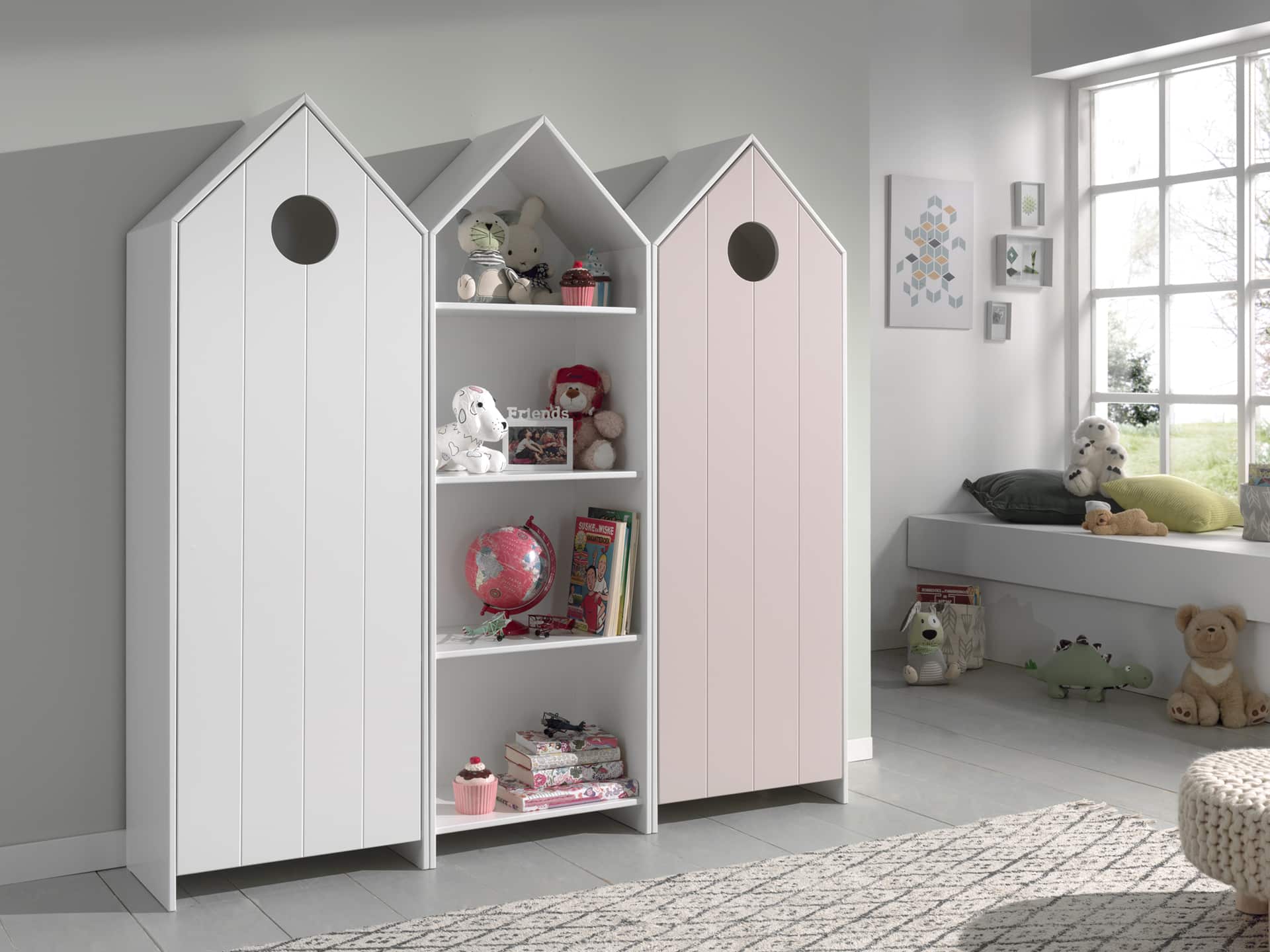 Deze combinatie uit de CASAMI collectie bestaat uit 3 kasten in de vorm van een strandhuisje. Deze geven meteen een speelse en kleurrijke toets aan elke kinderkamer. De kastje met witte en roze deur beschikken over 3 legplanken en een kledinghanger die naar eigen keuze kunnen worden ingedeeld. Bij de open kast is er geen kledinghanger voorzien. Er is dus voldoende opbergruimte voorzien voor kledij, speelgoed, boeken, beddengoed,… Deze kastjes zijn een echte eye-catcher die elke baby- of kinderkamer compleet maakt.