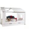 Dit huisbed (90 x 200 cm) in wit van de HOUSEBED collectie is vervaardigd uit een combinatie van massief grenen en MDF. Het bed combineert comfort, veiligheid en speelplezier in �n stijlvol ontwerp. Het raampje met vensterbank nodigt uit tot rollenspel, terwijl het schuine dak een knus huisje vormt om in weg te dromen. Er is geen lattenbodem voorzien, maar wij raden hiervoor een rollattenbodem aan. Laat je dromen tot leven komen met dit charmante huisbed. Onderaan de bedlade zijn er wieltjes voorzien zodat de lade gemakkelijk kan worden in- en uitgetrokken. Deze bedlade biedt een extra slaapplek voor een gast maar kan net zo goed dienen als extra opbergruimte.