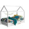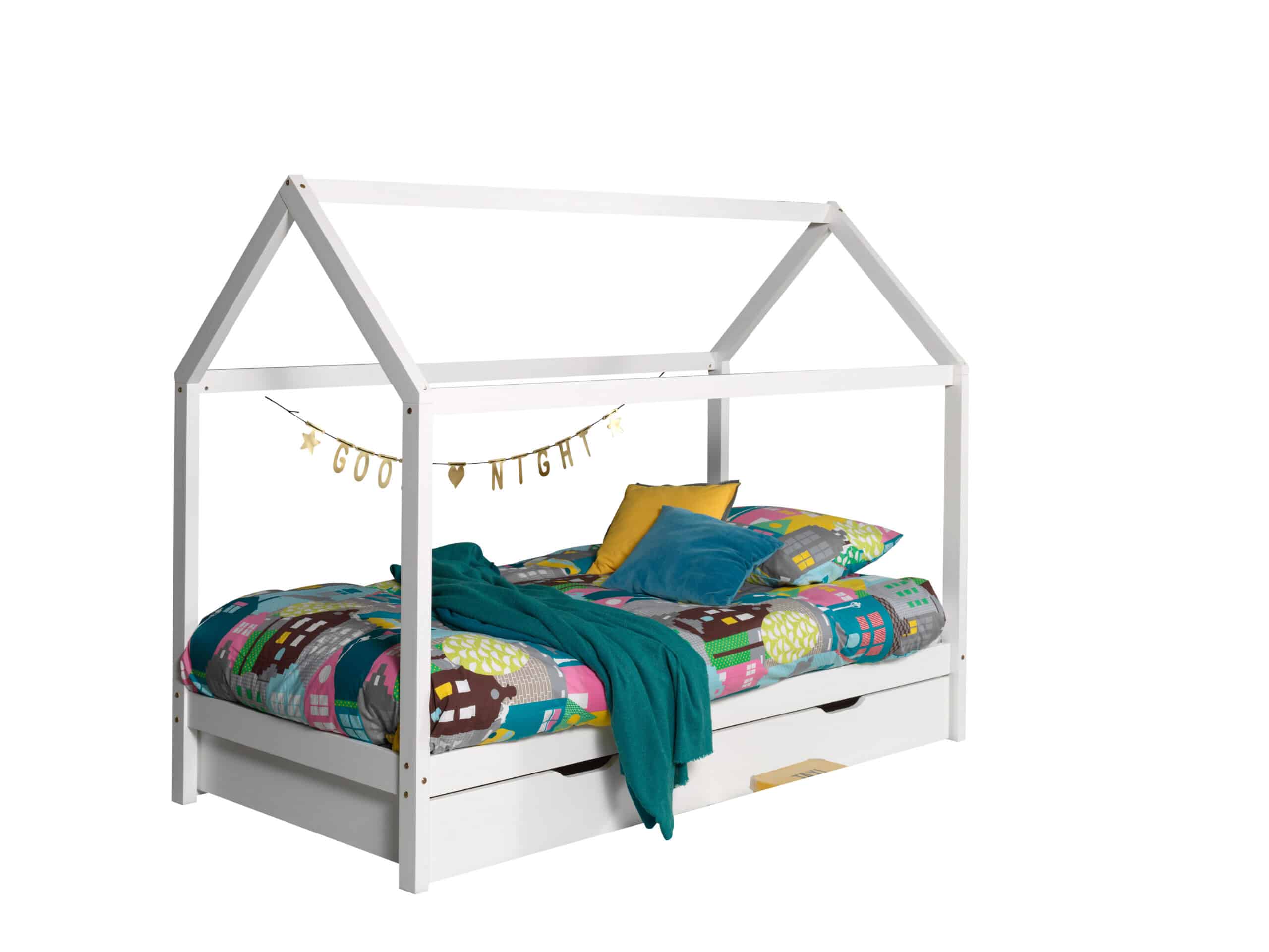 Het DALLAS huisbed (90 x 200 cm) in de kleur wit is vervaardigd in massieve den. Het speelse design geeft een extra touch aan elke kinderkamer. Maak het extra gezellig met kleurrijke kussens, dekentjes en een lichtslinger als decoratie. Onderaan de bedlade zijn wieltjes voorzien zodat deze gemakkelijk kan worden in- en uitgetrokken. Deze bedlade biedt een extra slaapplek voor een gast maar kan net zo goed dienen als extra opbergruimte.
