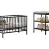 Het DINO babybed (60 x 120 cm) in de kleur antraciet is een mooie aanvulling op elke babykamer en biedt tevens comfort en veiligheid. Het is perfect voor ouders die op zoek zijn naar een duurzaam, stijlvol en praktisch babybed. De lattenbodem is verstelbaar op 3 verschillende hoogtes waardoor het bed gemakkelijk kan worden aangepast aan de groeiende behoeften van de baby. Ook de verzorgingstafel is een perfecte combinatie van functionaliteit en esthetiek, ontworpen om de moderne babykamer te verrijken. Deze zorgvuldig vervaardigde tafel biedt een ruim verversoppervlak aangevuld met twee open planken, waardoor alle babybenodigdheden binnen handbereik zijn. Het natuurlijke hout en het eenvoudige ontwerp passen bij verschillende interieurstijlen en thema�s.
