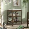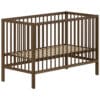 Het DINO babybed (60 x 120 cm) in walnoot is een mooie aanvulling op elke babykamer en biedt tevens comfort en veiligheid. Het is perfect voor ouders die op zoek zijn naar een duurzaam, stijlvol en praktisch babybed. De lattenbodem is verstelbaar op 3 verschillende hoogtes waardoor het bed gemakkelijk kan worden aangepast aan de groeiende behoeften van de baby. Ook de verzorgingstafel is een perfecte combinatie van functionaliteit en esthetiek, ontworpen om de moderne babykamer te verrijken. Deze zorgvuldig vervaardigde tafel biedt een ruim verversoppervlak aangevuld met twee open planken, waardoor alle babybenodigdheden binnen handbereik zijn. Het natuurlijke hout en het eenvoudige ontwerp passen bij verschillende interieurstijlen en thema�s.