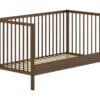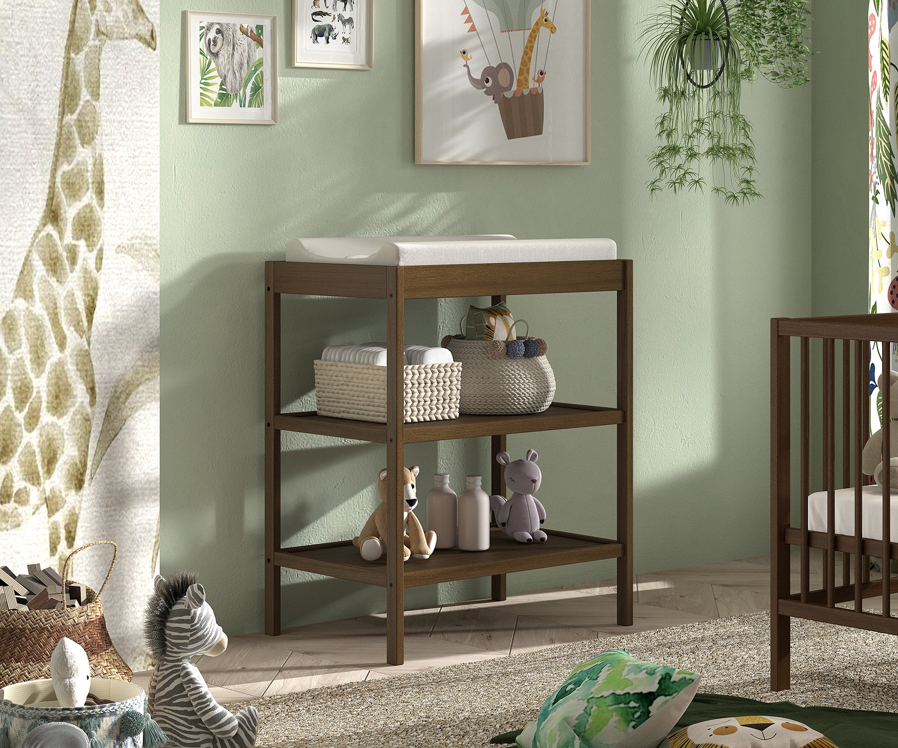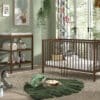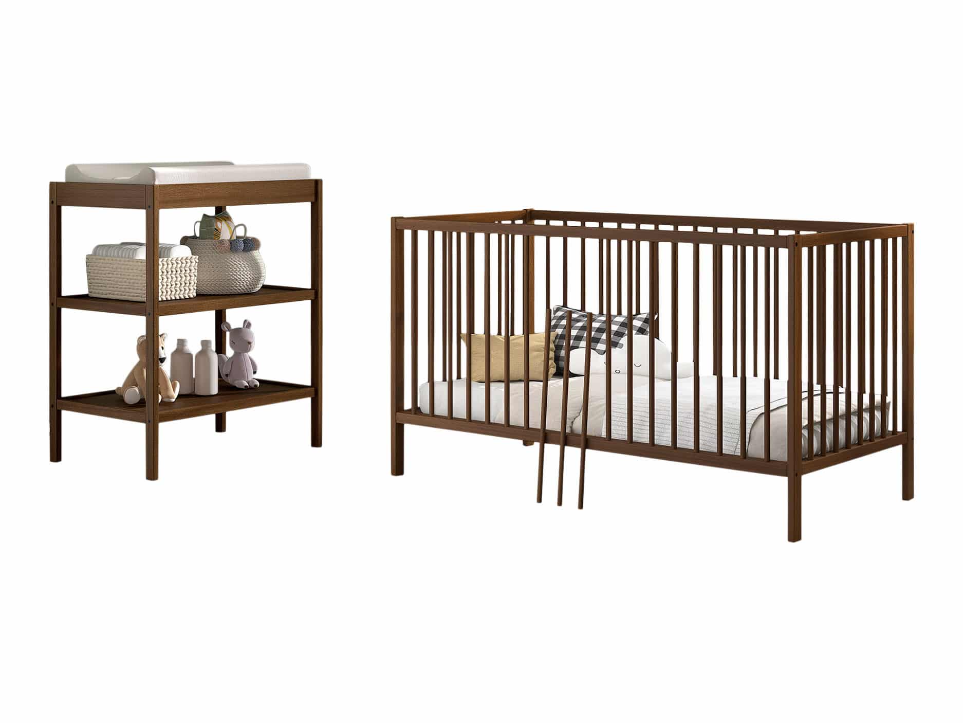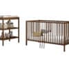 Het DINO babybed (70 x 140 cm) in walnoot is een veelzijdige en aanpasbare slaapoplossing. De lattenbodem kan versteld worden op 3 verschillende hoogtes en er kunnen 3 spijlen worden uitgehaald. Dankzij het stevige frame en de verfijnde afwerking is dit bed een veilige plek. Dit babybed kan worden omgevormd naar een peuterbed, waardoor het zich aanpast aan de groeiende behoeften van baby naar peuter. Ook de verzorgingstafel is een perfecte combinatie van functionaliteit en esthetiek, ontworpen om de moderne babykamer te verrijken. Deze zorgvuldig vervaardigde tafel biedt een ruim verversoppervlak aangevuld met twee open planken, waardoor alle babybenodigdheden binnen handbereik zijn. Gemaakt van duurzaam hout, biedt deze collectie stevigheid en een natuurlijke uitstraling.