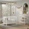 Het DINO babybed (60 x 120 cm) in de kleur wit is een mooie aanvulling op elke babykamer en biedt tevens comfort en veiligheid. Het is perfect voor ouders die op zoek zijn naar een duurzaam, stijlvol en praktisch babybed. De lattenbodem is verstelbaar op 3 verschillende hoogtes waardoor het bed gemakkelijk kan worden aangepast aan de groeiende behoeften van de baby. Ook de verzorgingstafel is een perfecte combinatie van functionaliteit en esthetiek, ontworpen om de moderne babykamer te verrijken. Deze zorgvuldig vervaardigde tafel biedt een ruim verversoppervlak aangevuld met twee open planken, waardoor alle babybenodigdheden binnen handbereik zijn. Het natuurlijke hout en het eenvoudige ontwerp passen bij verschillende interieurstijlen en thema�s.