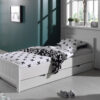 Dit bed (90×200) van de ERIK collectie is vervaardigd in wit gelakte MDF in combinatie met massief grenen. Het hoofd- en voeteinde van het bed hebben een verticaal gefreesd detail. Het bijhorende rolbed is alsook vervaardigd in wit gelakte MDF in combinatie met massief grenen. Deze lade kan gebruikt als extra slaapplaats voor logees of als opbergruimte. Het eenvoudige maar landelijk uiterlijk van deze collectie maakt dat het past in elke kinder- of jeugdkamer.