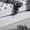 Dit bed (90×200) van de ERIK collectie is vervaardigd in wit gelakte MDF in combinatie met massief grenen. Het hoofd- en voeteinde van het bed hebben een verticaal gefreesd detail. Het nachtkastje beschikt over 1 legplank en 1 lade. De 3-deurs kleerkast beschikt over een kledinghanger en 2 legplanken over de gehele breedte van 2 deuren en 4 legplanken achter de derde deur. Het bureau beschikt over een ruim schrijfoppervlak en 1 kast aan de rechterzijde. Het eenvoudige maar landelijk uiterlijk van deze collectie maakt dat het past in elke kinder- of jeugdkamer.