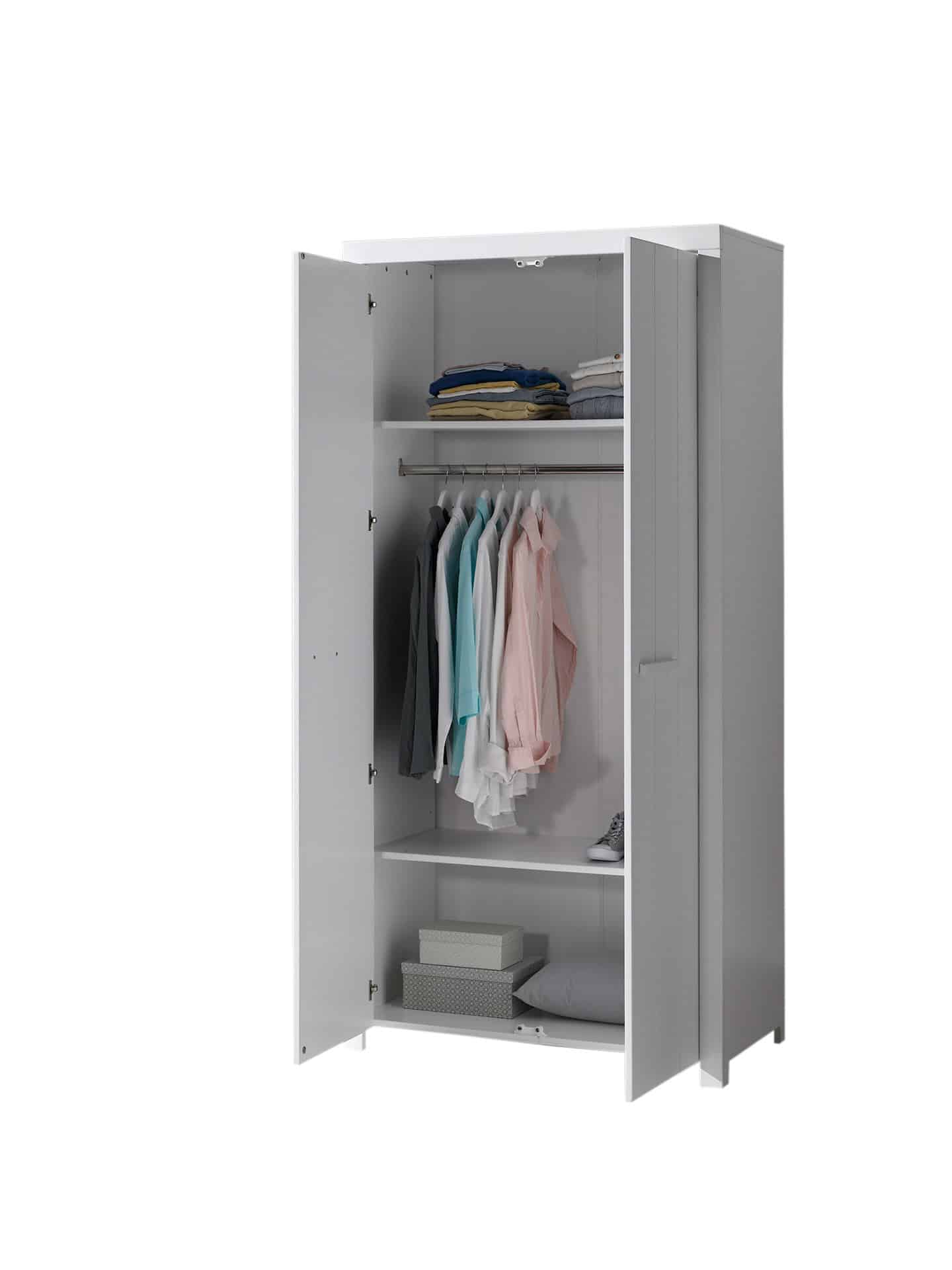 Dit bed (90×200) van de ERIK collectie is vervaardigd in wit gelakte MDF in combinatie met massief grenen. Het hoofd- en voeteinde van het bed hebben een verticaal gefreesd detail. Het bijhorende rolbed kan gebruikt worden als extra slaapplaats voor logees of als opbergruimte. Het nachtkastje beschikt over 1 legplank en 1 lade. De 2-deurs kleerkast beschikt aan de linkerkant over een kledingroede en een legplank, de rechterkant heeft 4 legplanken. Het bureau beschikt over een ruim schrijfoppervlak en 1 kast aan de rechterzijde. Het boekenrek bestaat uit 4 legplanken en 1 lade. Er is dus voldoende opbergruimte voorzien. Het eenvoudige maar landelijk uiterlijk van deze collectie maakt dat het past in elke kinder- of jeugdkamer.